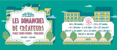 Rendez-vous dimanche 19 octobre prochain à Toulouse place Saint-Pierre. L'occasion de rencontrer les talents de la région et de voir mes créations